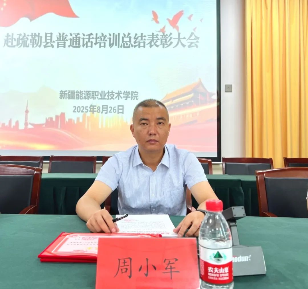 2025年8月26日上午,学校在图书馆会议室举行赴疏勒县普通话培训总结表彰大会。会议全面总结本次普通话培训工作的成效,表彰表现突出的先进个人,校党委书记李莉、党委副书记周小军,副校长杜海、马剑、孙宜龙及全体教职工参加会议,副校长何毅主持会议。