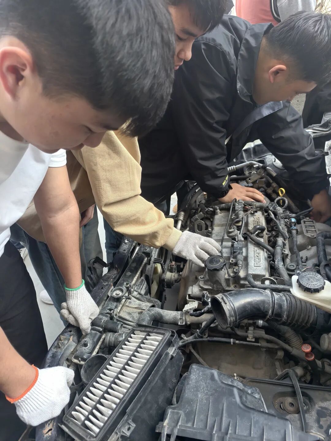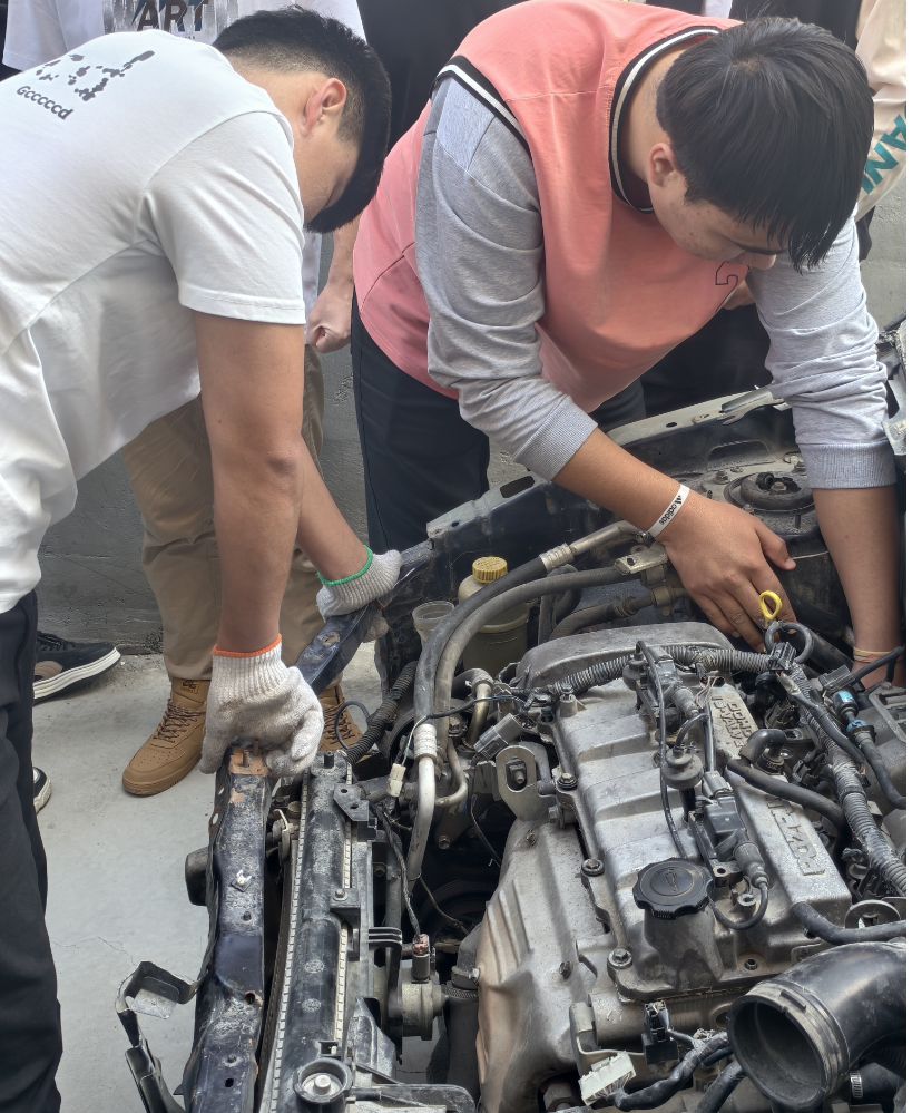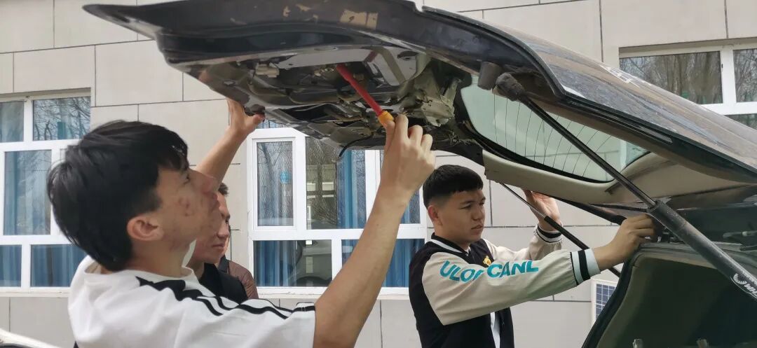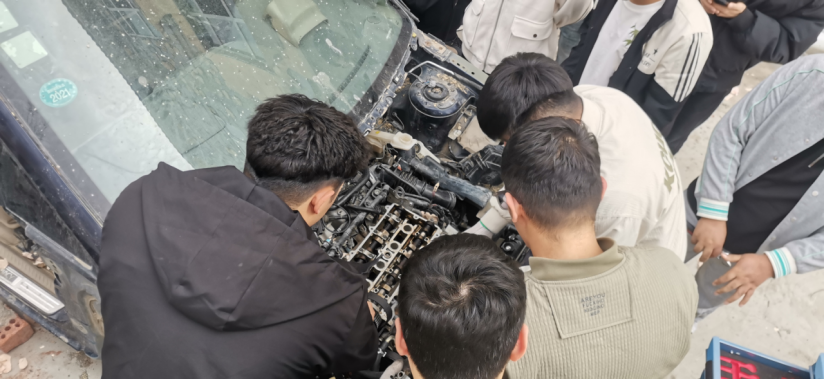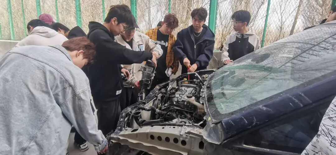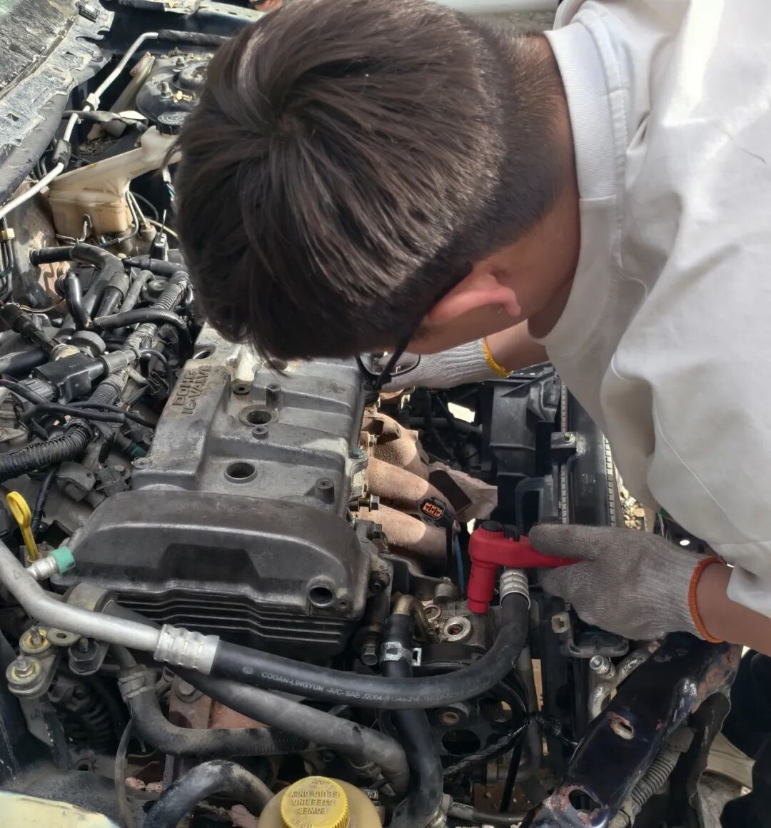 在新能源汽车检测与维修技术专业的课堂上,学生们化身汽车医生,为汽车的“心脏”和“神经系统”进行深度诊断与修复。 实训现场,引擎轰鸣、电路交织,哪个是气节门?哪个是节温器?发动机该怎么检查?同学们努力将课本知识转化为实际操作能力,开启精技强能之旅。