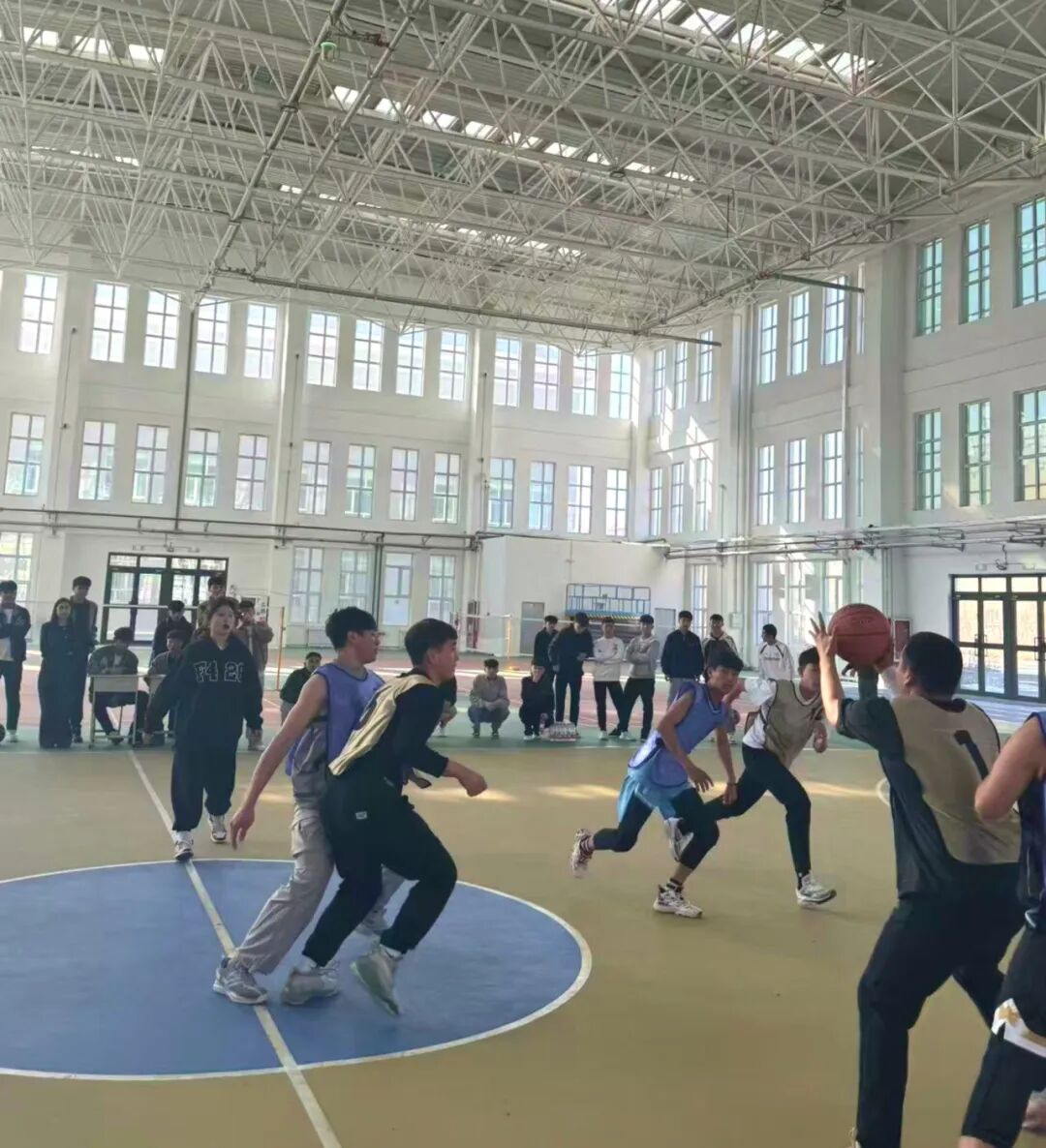 比赛现场气氛热烈非凡。球员们充分展现出顽强拼搏的精神风貌和熟练的篮球技艺。他们配合默契,攻防有序,一次次精彩的快攻反击,一次次顽强的贴身防守,赢得了现场观众的阵阵欢呼声。