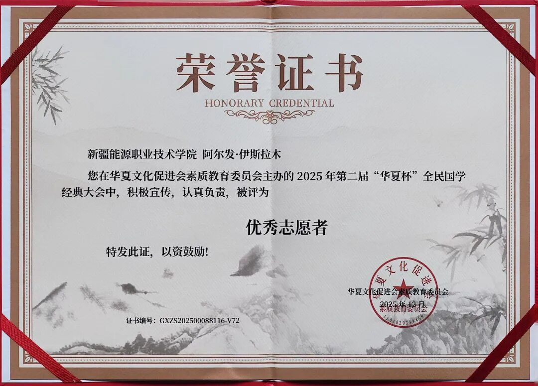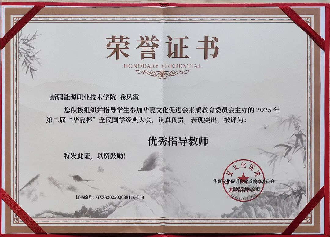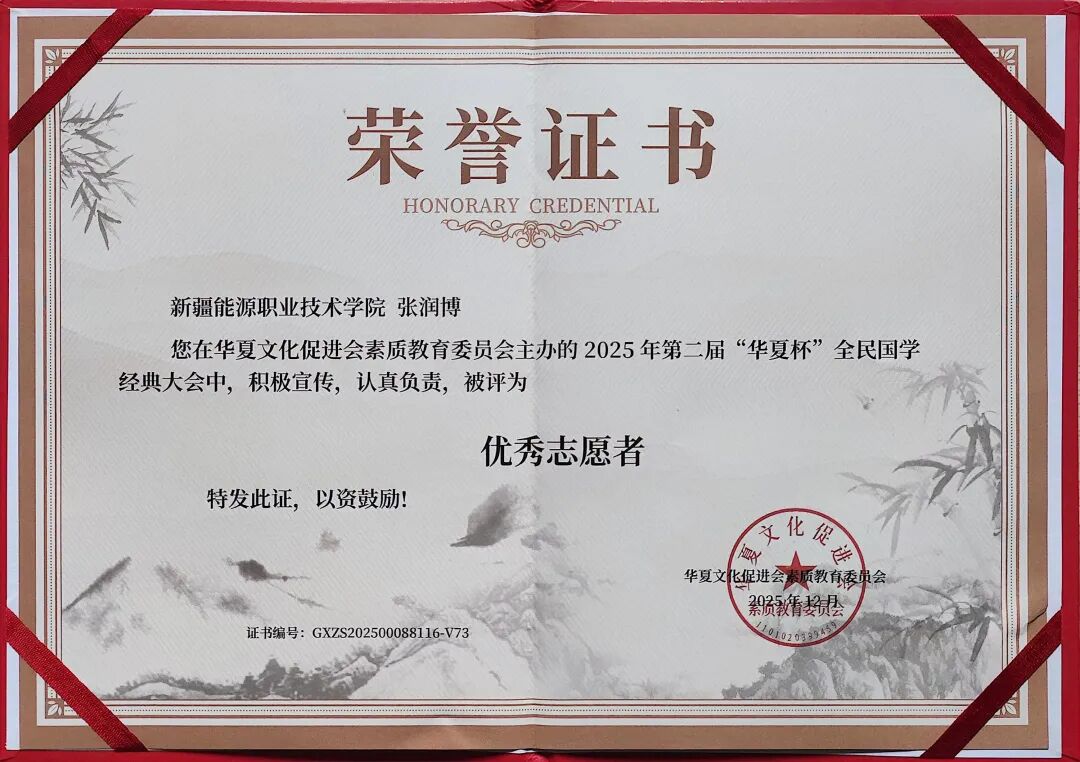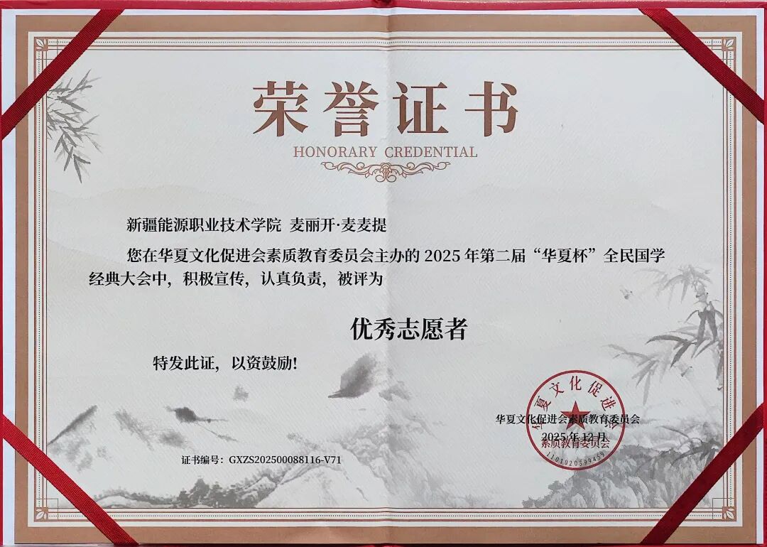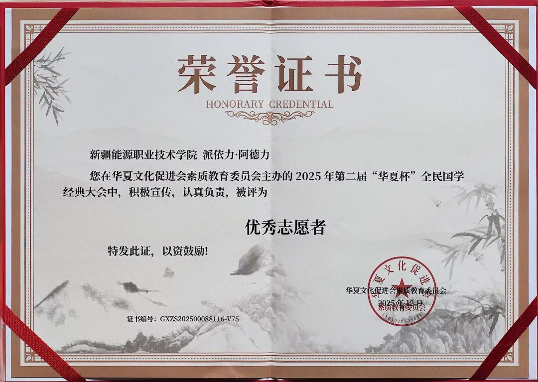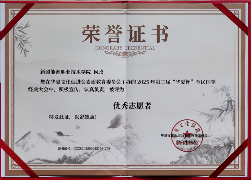 近日,由华夏文化促进会素质教育委员会主办的2025年第二届“华夏杯”全民国学经典大会圆满落幕。本次大会以传承中华优秀传统文化为核心,吸引全国众多院校师生积极参与。学校师生积极参与,6名学生获评“优秀志愿者”,4名教师获评“优秀指导教师”。学校荣获“优秀组织单位”称号”。